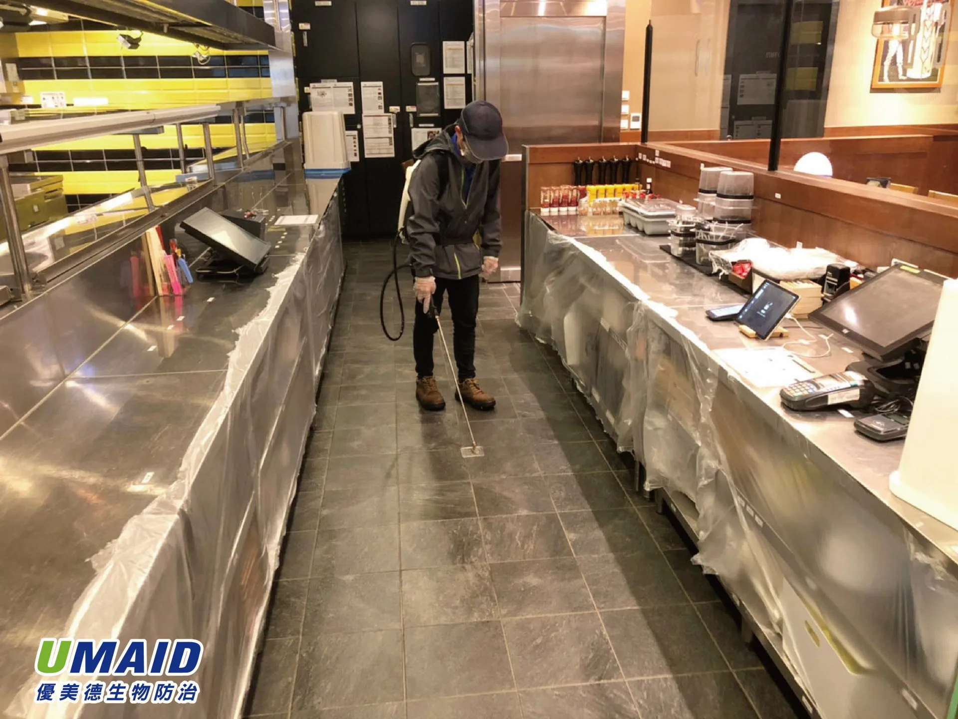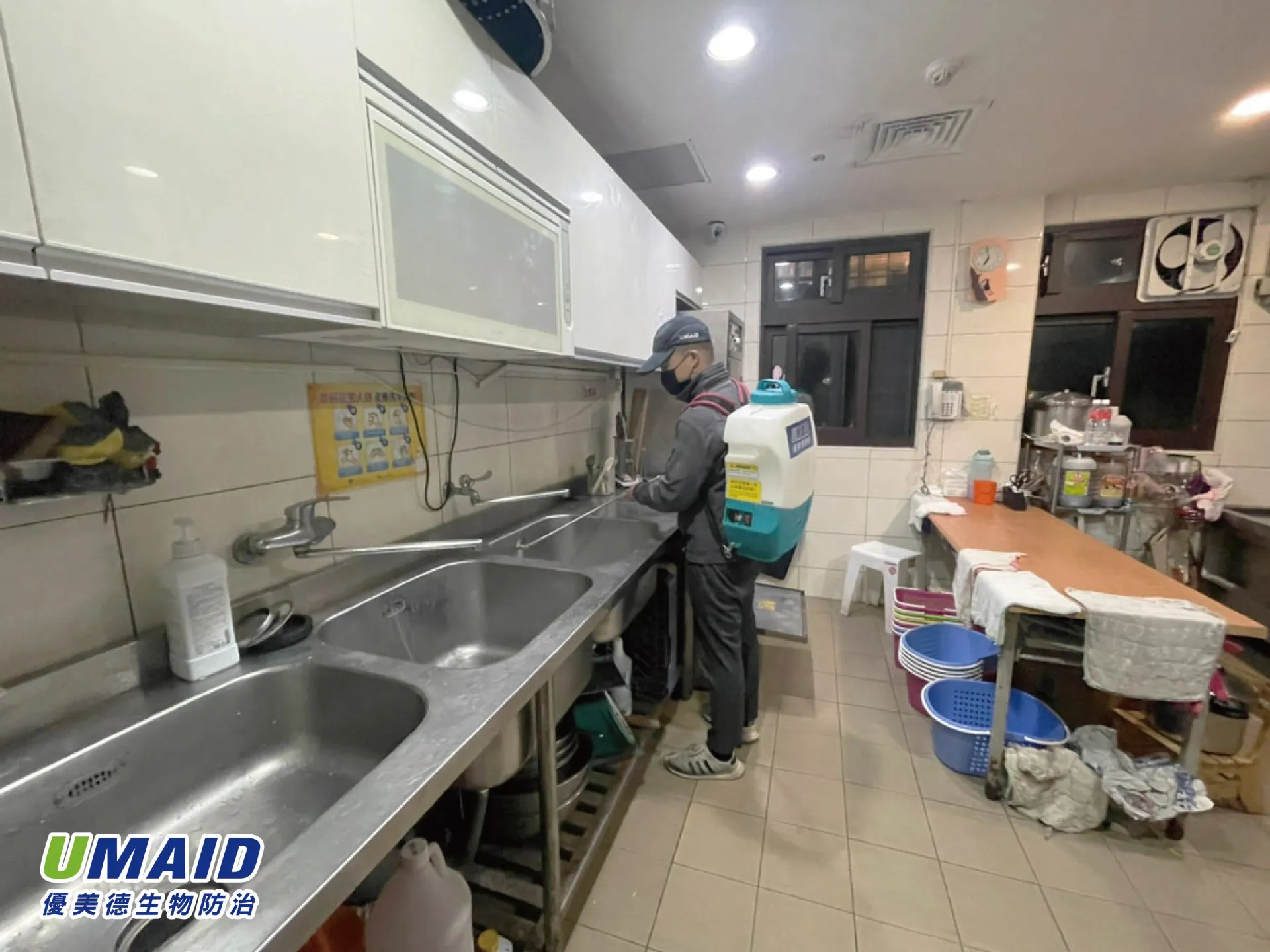 採用殘效噴灑方式防治蟑螂,針對地面、設備與桌角等重點位置全面加強,