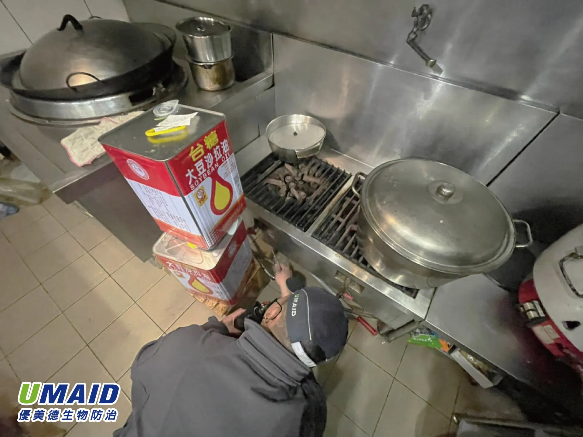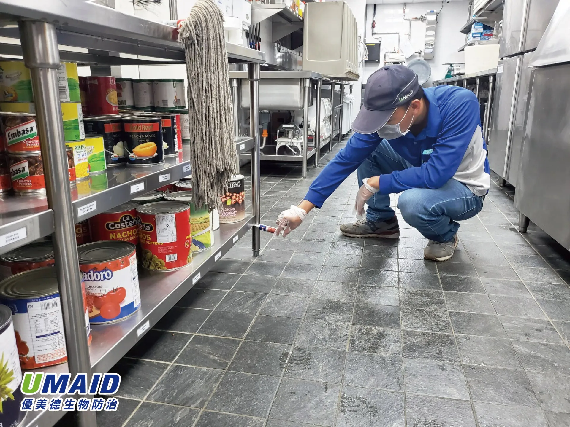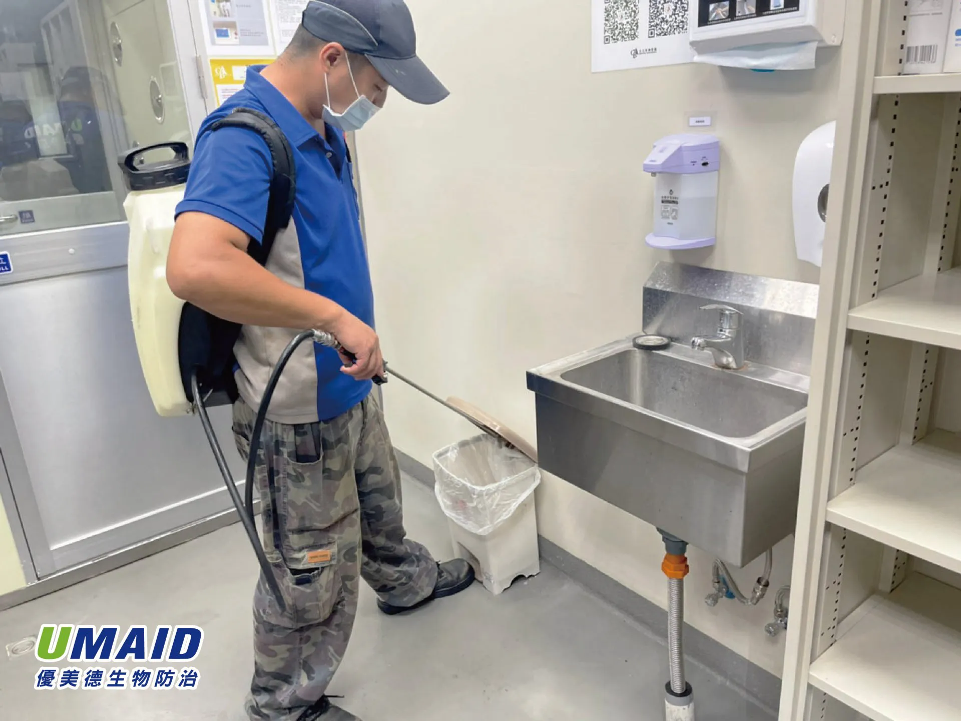 採用殘效噴灑方式防治蟑螂,針對地面、設備與桌角等重點位置全面加強,