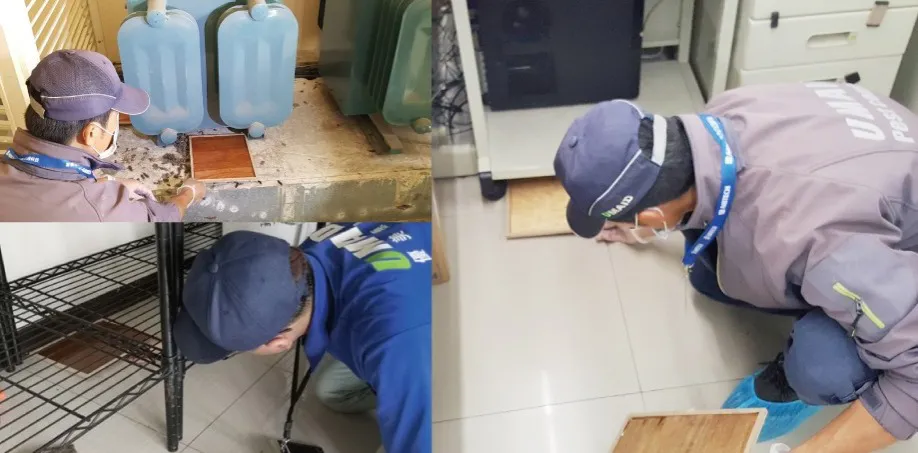 依據封阻及阻絶狀況,分區域使用固定量黏鼠板,進行鼠類之誘殺。捕鼠籠或毒餌放置固定位置,觀察數日,如無鼠隻前來再更 動放置位置。此外捕鼠籠須放平穩,以免搖動驚走鼠隻。