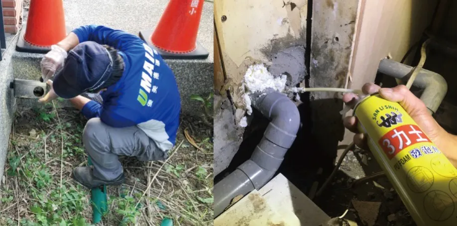 針對防治範圍四周檢視確認鼠患主要入侵區域,及行進路線,進行阻絕工作,防止鼠患入侵。室內若有老鼠,問題不外乎有對外孔洞或是門窗未關被牠們偷溜進來;若是有對外的孔洞,則必須把所有大大小小的洞都找出,並一一的封阻?若是因為門窗未關所導致,則隨時注意關緊門窗是之後必須要注意的重點。以上兩點未注意的話,想要杜絕老鼠進入屋內是不可能的!