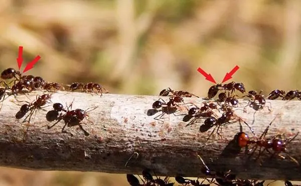 紅火蟻的中樞與腹錘間有兩節明顯腰節(腹柄節與後腹柄節),當你不小心侵門踏戶時!!紅火蟻會侵巢而出並進行攻擊。