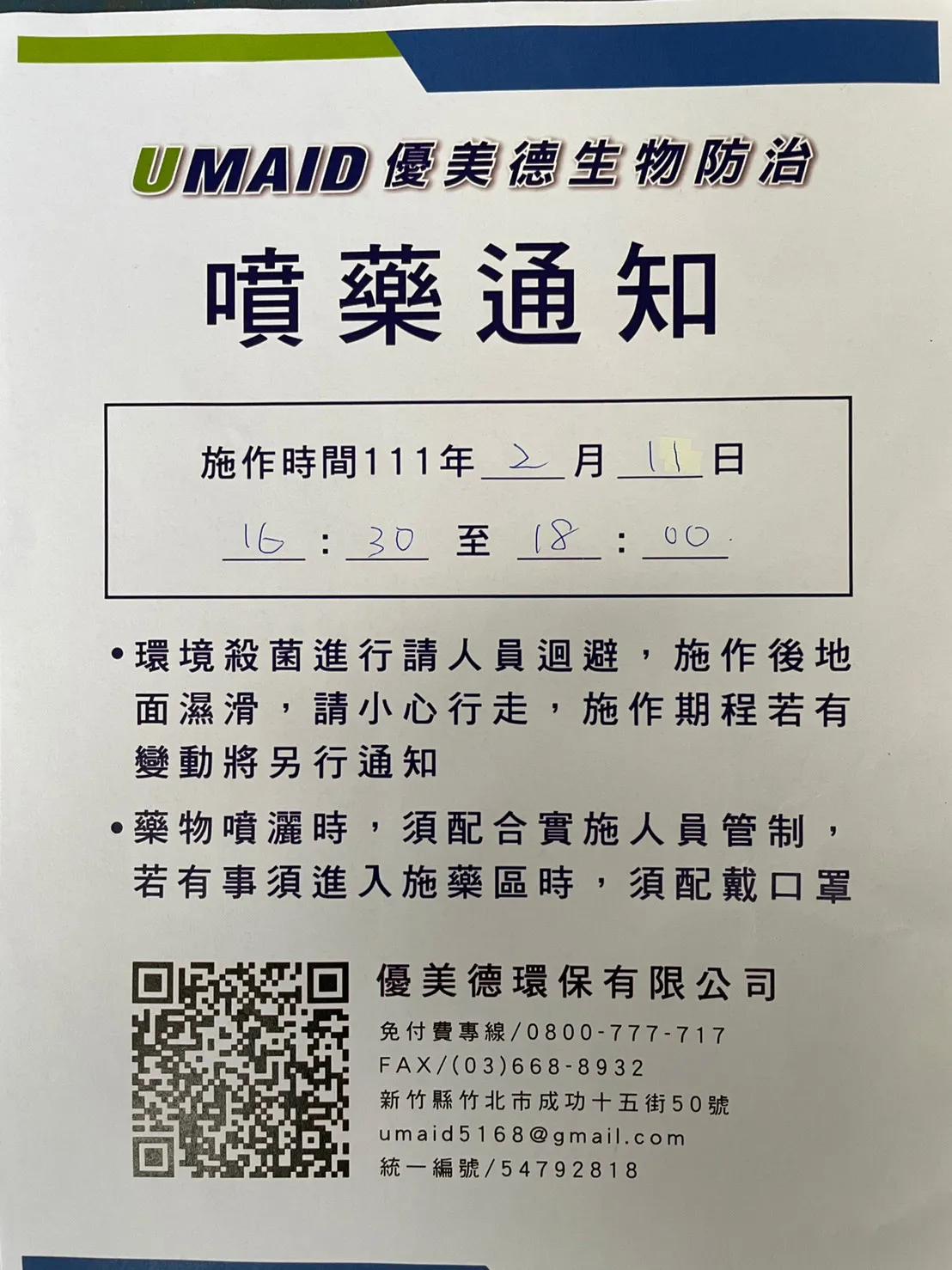 STEP.1 確認施作時間,做好預先告知,並張貼施藥時間。